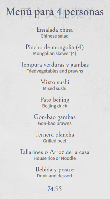 Nach kurzem Blick in die wirklich sehr umfangreiche Speisekarte entschieden wir uns spontan für das Menü für 4 Personen.