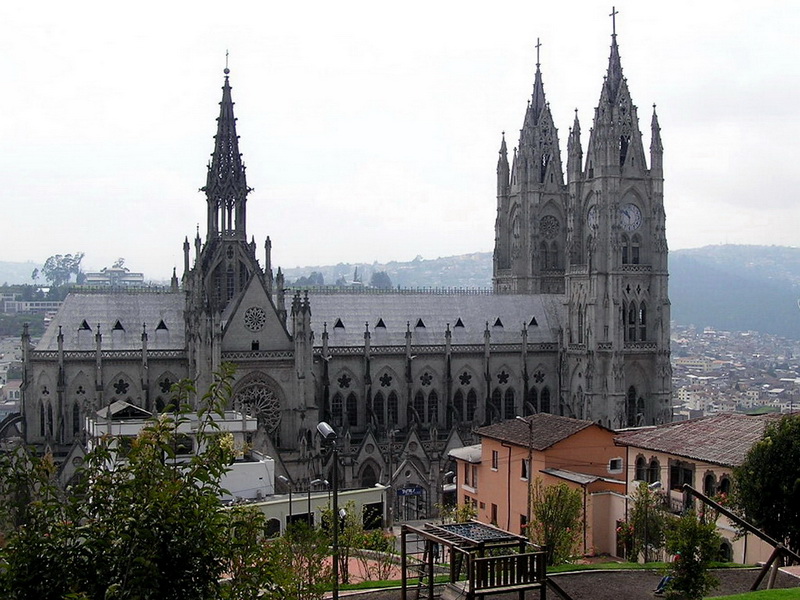 Die Basilica del Voto National erinnert mit ihren hohen Doppeltürmen entfernt an den Kölner Dom. Hier erklimmen wir einen der Türme und haben eine schöne Aussicht auf den alten und neuen Teil der Stadt.