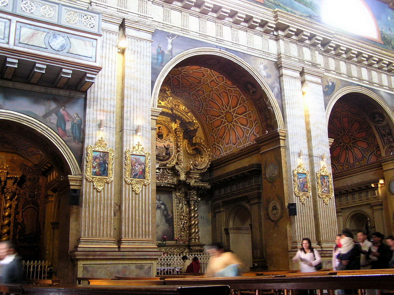 Fast in allen Kirchen, die wir besichtigen, finden Gottesdienste statt. So auch am Abend, als wir die die Iglesia de la Compaña de Jesús besuchen, die bis auf den letzten Platz gefüllt ist. Die Pracht dieses sakralen Bauwerks ist fast atemberaubend. Dies sowohl im Hinblick auf Fassade und Portal wie auch bezüglich der Ausgestaltung. So viel Gold an Altaren, Kuppel, Deckengewölbe und Pfeilern haben wir noch nirgendwo in einer christlichen Kirche gesehen.