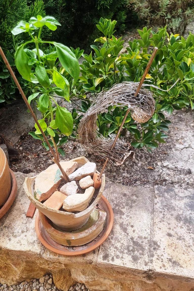 Ich meine das, was in dem "antiken" :lol: Blumentopf rechts vom Basilikum-"Strietz" an einem hölzernen Grillspieß hängt.