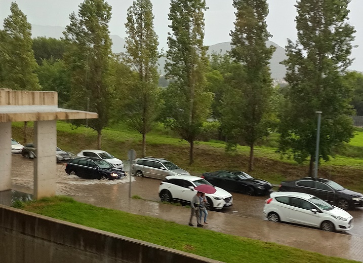 Heute Vormittag goss es wie aus Eimern. In Denia am Hospital stand das Wasser 20 cm hoch, ein einsteigen trockenen Fußes unmöglich. ich stand in der Tiefgarage, die einigermaßen trocken war