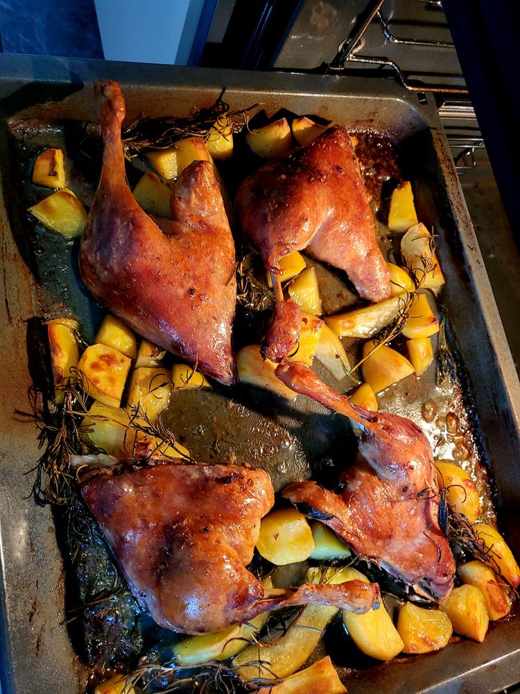 Die Ententeile habe ich tiefgefroren erstanden und man kann statt den Schlegeln auch Entenbrüste nehmen.