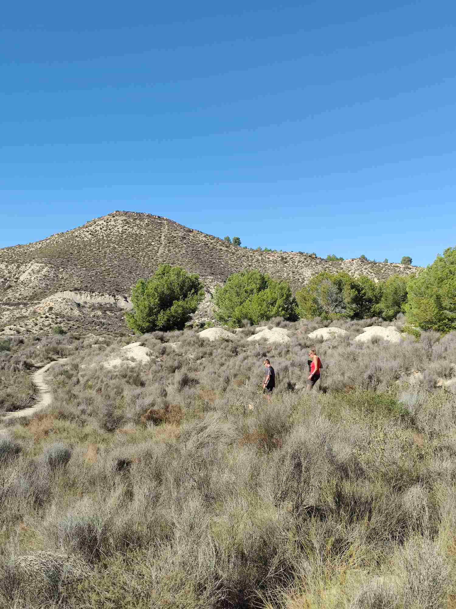 Nachdem es heute am Strand plötzlich etwas windig und frisch würde, haben wir unsere Sachen zusammengepackt und die Badesachen zu Hause mit dem Auto getauscht. Von Torrevieja, La Veleta sind wir gerade aus die CV 95 nach San Miguel de Salinas und noch ein paar Kilometer weiter zum Stausee Pedrera gefahren. Nach etwa 20 Minuten Fahrt, vorbei an vielen Orangen oder Mandarinen- und Granatapfelhainen, haben, haben wir den Aussichtspunkt am Stausee erreicht. Von dort machten wir uns zu Fuß hintunter zum See, wo wir ein paar Anglern begegneten. Schwimmen ist dort angeblich nicht erlaubt. Mittlerweile war wieder tolles Wetter und gleich Mal 4 Grad wärmer wie an der Küste. Nach einem Spaziergang am Ufer, mit viel Schlamm führen wir dann um den See herum und wieder zurück.