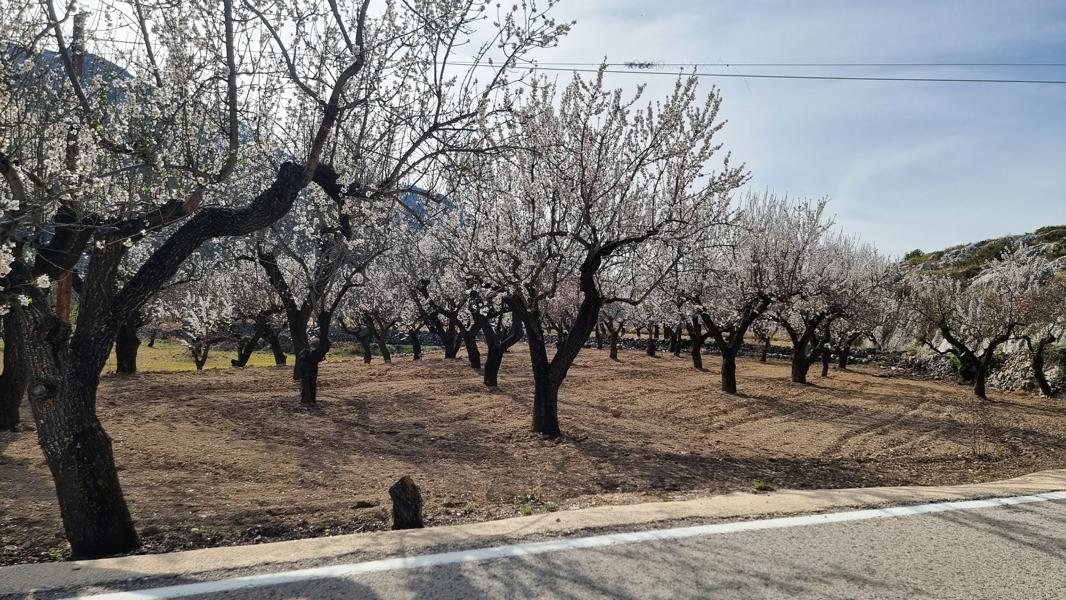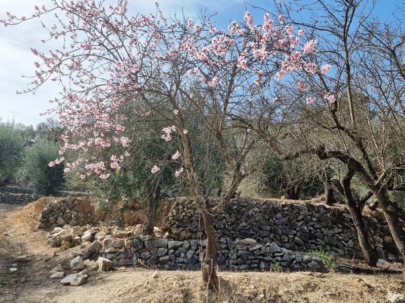 Heute auf dem Weg von der Küste ins Inland entdeckte ich deutlich mehr blühende Mandelbäume als noch vor zwei Tage. Es ist aber nicht nur das Bakterium oder auch der fehlende Regen, weshalb immer mehr Mandelhaine verkahlen, viele verwildern auch, weil die Landwirte kaum noch etwas für die geernteten Mandeln erhalten und ihnen die Kraft fehlt, ihre Felder weiter zu kultivieren, denn das bedrohliche Kreischen der Kettensägen kommt immer näher.