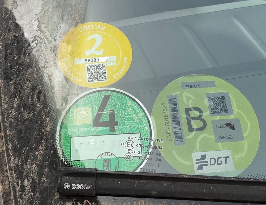 Jetzt sieht mein Auto aus wie ein Kasperlmobil, bunte Sticker wohin man schaut, weil es offenbar völlig undenkbar ist, dass die EU das irgendwann einmal vereinheitlicht.