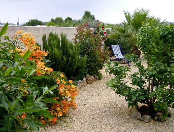 riskier doch mal einen Blick in Nachbars Garten (keine Ferienhäuser, da wird es beim bewässern schwierig und deshalb blüht dort meist wenig). Die klimatischen Bedingungen sind nämlich sehr unterschiedlich. Ich mußte schon einiges Lehrgeld bezahlen, weil ich unbedingt Bougainvillea an der Hauswand haben wollte, aber es im Jalontal im Winter zu kalt ist. Dieses Jahr ist mir auch schon etliches erfroren, obwohl die Sträucher und Bäume schon 8 Jahre stehen.