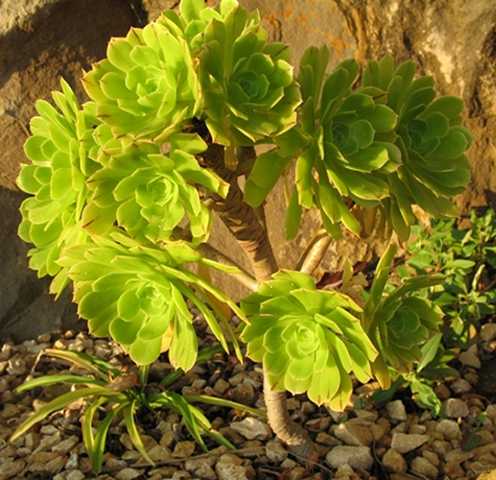 Zurzeit zeigen die Aeonium arboreum ihre großen gelben Blüten.
