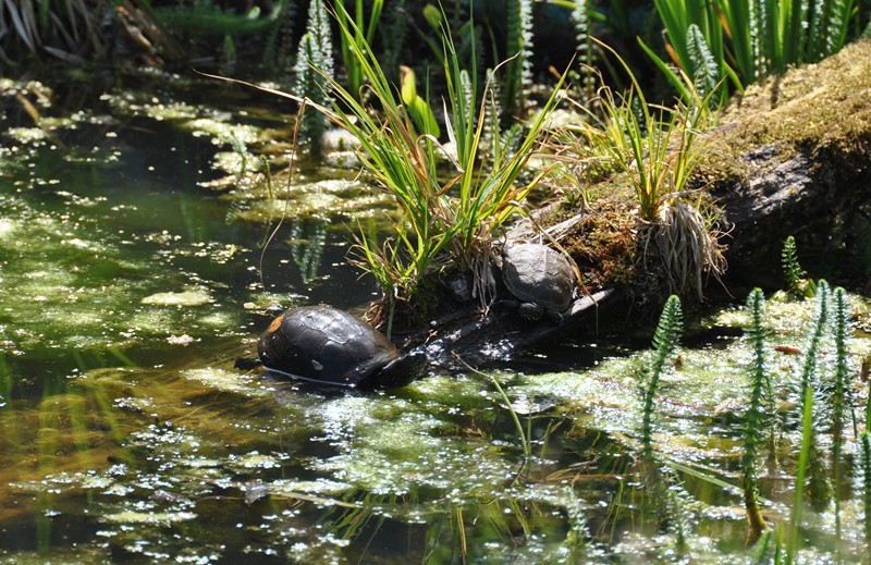 Die Sumpfschildkröten benutzen das schöne Frühlingswetter auch zum sonnen und kriechen bevorzugt auf die Baumstämme.