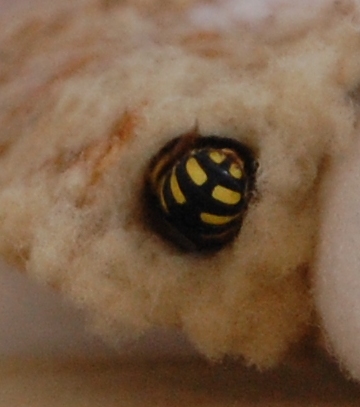 Entschuldige bitte, Monika, ich hatte deine erste Frage vergessen zu beantworten. Dieses "Insekt" (Begründung für die Anführungszeichen kommt gleich), habe ich eine Stunde lang beobachtet. Davor war sie aber mit dem Kokon schon fast fertig.