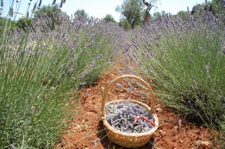Heute war ich bei Susanne Semjevski auf der Finca Cuta. Bestes Strandwetter, es waren über 35 Grad, aber genau das richtige Wetter, um die Lavendelblüten zu schneiden, denn die müssen möglichst trocken sein, damit man sie destillieren kann.