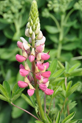 Lupine nach erstem Rückschnitt. Werden im jungen Alter gerne von Schnecken besucht!