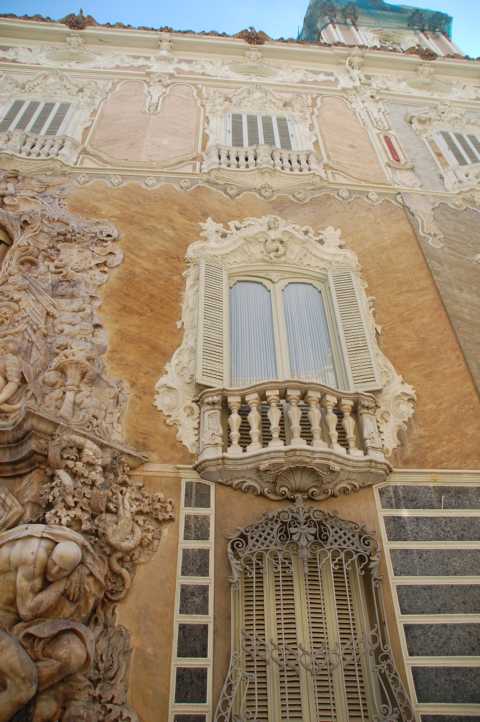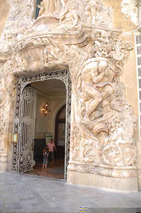 Aus der Zeit stammt auch die Fassade mit dem eindrucksvollen Barock-Portal, das zu Ehren des Markgrafen von Dos Agua mit einer Allegorie der Wasserströme (Río Jucár und Túria) aus Alabastermarmor verziert wurde, der aus den Steinbrüchen von Picassent stammt. Erschaffen wurde das Kunstwerk von Ignacio Vergara nach einem Entwurf von Hipólito Rovira.