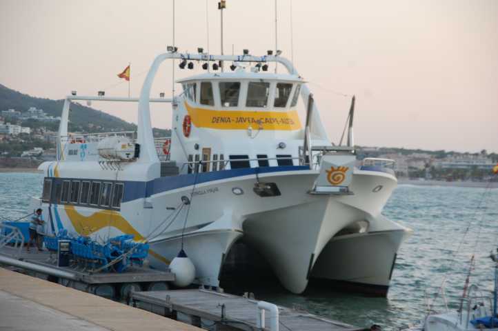 Schon während des Essens weht ein kräftiger Wind, der sich auf See, selbst in einem Schiff dieser Größe, deutlich bemerkbar machte. Das Küstenpanorama hob und senkte sich vor unseren Augen meterweit, nichts für Leute mit einem schwachen Magen, die Crew verteilte Plastiktüten, die reißenden Absatz fanden. Eine junge Dame aus dem fernen Osten litt die ganze Fahrt über mit geschlossen Augen still vor sich hin, so wie ihr ging es etlichen Passagieren, sogar eine Bewusstlose wurde von der Crew lang durchs Schiff getragen. Wie mochte es auf den Yachten zugehen, die gegen unser Schiff aussahen wie Spielzeugboote? Um Mitternacht begann das Feuerwerk mit vereinzelt abgeschossenen Raketen, doch dann ging das Schauspiel los. An weit auseinander gelegenen Stellen wurden gleichzeitig Raketen gezündet, die den abendlichen Himmel in ein buntes Lichtermeer tauchten. Ein einmaliges Spektakel, da man vom Meer aus das ganze Feuerwerk im Blick hatte. Zwischen Katamaran und Küste hoben die hohen Wellen Sportboote und Yachten vor der dunklen Silhouette der Sierra de Bernia auf ihre glitzernden Kämme, darüber der funkelnde Himmel. Um ein Uhr lief der Katamaran in den Hafen ein und einige bleiche Passagiere auf wackeligen Beinen waren froh, wieder festen Boden unter den Füßen zu spüren. Glücklicherweise sind wir beide seetauglich - so dass wir die Fahrt genießen konnten.
