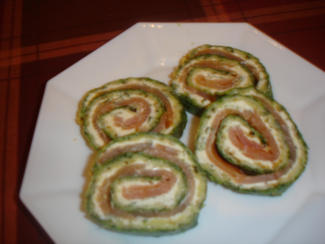 Spinat auftauen und mit dem Ei verquirlen. Anschließend die Masse auf ein mit Backpapier ausgelegtem Backblech verteilen, dünn ausstreichen und mit dem geraspelten Käse bestreuen. Nun alles in den Backofen, 15 Minuten ca., bei 200 Grad bis der Käse braun wird. Danach komplett auskühlen lassen. Die gesamte Fläche mit dem Frischkäse bestreichen und mit Lachs belegen. Jetzt alles zu einer festen Rolle zusammen rollen und mit Alufolie fest einpacken. Diese Rolle nun für ca. 8 Stunden in den Kühlschrank. In Scheiben geschnitten mit ein bissel Weißbrot und einem oder zwei Gläsern Weißwein……..lecker.