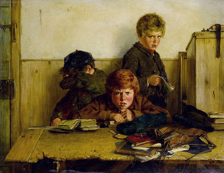 Diese Bilddatei "Schuljungen beim Nachsitzen" ist gemeinfrei, weil ihre urheberrechtliche Schutzfrist abgelaufen ist.