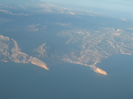 Calp und der Peñon de Ifach (rechts im Bild) vom Flugzeug aus