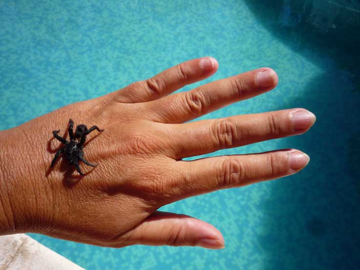 Heute Morgen haben wir in unserem Pool eine Spinne gefunden.