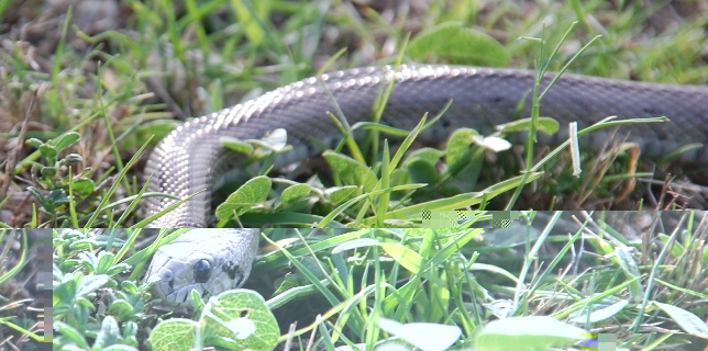 Später konnte ich noch ein Foto der Schlange machen, als sie aus ihrem Winterquartier kam, um sich die warmen Sonnenstrahlen auf die glatte Natterhaut brennen zu lassen.