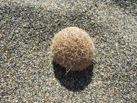 Ich glaube auch, dass die Bällchen unter Wasser entstehen und am Sandstrand (jedoch unter Wasser) die einzelnen Halme durch die Bewegung der Wellen zu Kugeln geformt werden.