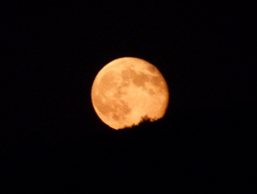 Ein besonderes Schauspiel war vorgestern, wie der Vollmond gegen 22 Uhr langsam hinter dem Berg hoch stieg