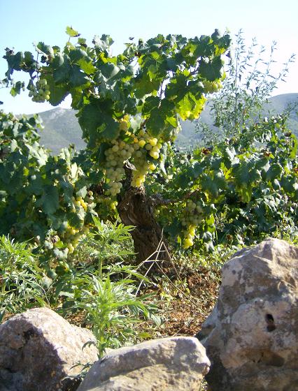 Bei uns in der Gegend wird kaum noch Wein angebaut. Seit die Reblaus in früheren Zeiten ganze Arbeit geleistet hatte, haben die Bauern ihre Weinfelder gerodet und stattdessen Oliven- und Mandelbäume angebaut. Doch an den Feldrändern findet man ihn noch: verwilderten Wein, der kleine, leckere Trauben hat, die auch ganz ohne Spritzmittel nicht befallen sind.