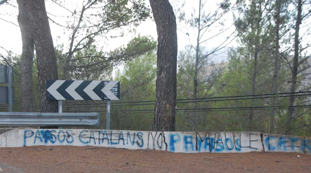 Dass kastilische Ortsnamen übersprüht werden und durch valencianische ersetzt werden, habe ich schon vor über zwei Jahrzehnten registriert. Aber die Graffiti nehmen in letzter Zeit zu - und zudem fallen mir hier und da Hakenkreuze auf, an Stellen, wo ich sie vorher nicht bemerkt habe.
