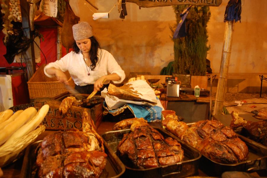 Auf jeden Fall saß das Geld bei den Spaniern (die gefühlte 99 Prozent der Besucher ausmachten) trotz Krise erstaunlich locker. Einer der geschmacklosen, minderwertigen Grillteller (parrillada) kostete 20 Euro, es wurde nur mit großen Scheinen bezahlt, ein Hunderter nach dem anderen ging über die Theke, doch auf ein Getränk musste man mehr als eine halbe Stunde warten. Mengen von Essensresten landeten im Müll (entweder wurde zu viel bestellt oder sogar die euphorischen Spanier bemerkten die miese Qualität?), ein eiserner Adler (Zierde auf einem Grillrost) stürzte einer Besucherin auf den Kopf, die blutüberströmt mit dem Krankenwagen abgeholt wurde. Leider gab der Akku meiner Kamera mitten im Geschehen den Geist auf, deshalb nur ein paar Eindrücke vom Anfang: