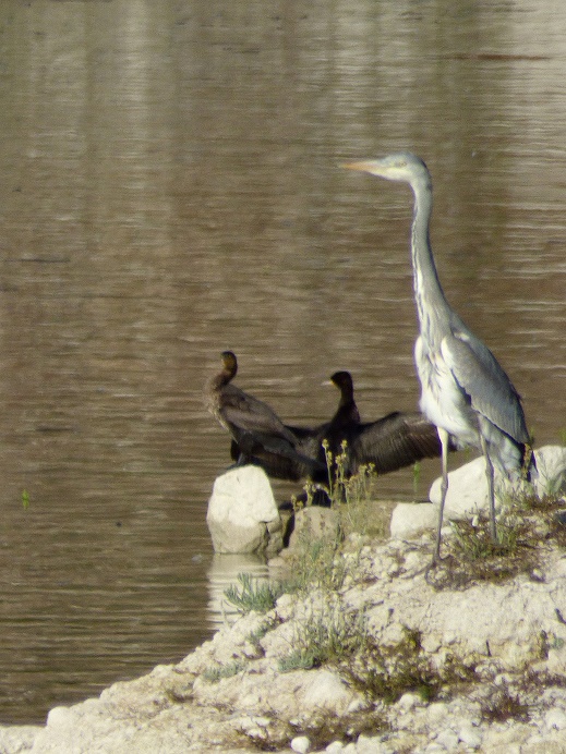 In einer ruhigen Ecke versammelten sich Fischreiher und Kormorane (habe ich hier noch nie gesehen).