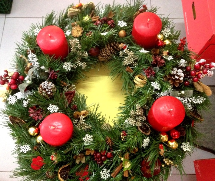 Anbei ein paar Fotos von unserem Kurz-Wochenendtrip nach Duesseldorf und unsere Weinachtsdeko, sowie ein Bild vom Kranz, welchen ich fuer meine Chefin gemacht habe, Durchmesser 40cm.