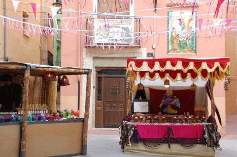 Gestern waren wir in Cocentaina. Die Stadt war rappelvoll!!! Die Gassen und Verkaufsstände waren mittelalterlich dekoriert und auch die Verkäufer trugen mittelalterliche Trachten. Kulinarische Köstlichkeiten, ob süß oder herzhaft, lockten an jeder Ecke, Kunsthandwerk, landwirtschaftliche Maschinen, Tanzaufführungen, Kinderbelustigung - für jeden war etwas dabei. Die Besucher konnten eine Ausstellung mit Exponaten aus der muselmanischen Zeit des Landkreises und das Fiestamuseum kostenlos besuchen. Etwas kurios: Ein Stand verkaufte deutsche Würstchen und deutsches Bier. Es herrschte eine super Stimmung, die Menschen haben sich amüsiert und konsumiert - zumindest hier auf der Fiesta war von Krise keine Spur.