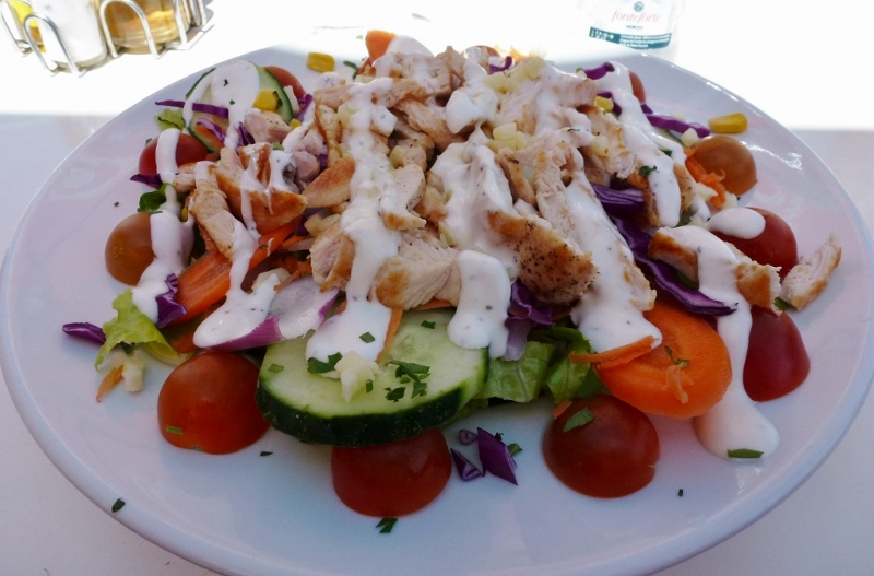 In Spanien ist die Küche reichhaltig, manchmal möchte man nur einen leckeren Salat als Hauptgang. In Fresco bei La Zenia Kreisel, kann man für 5-7€ einen grossen Salat bekommen mit einer guten Salatsauce. Es wird auch frischgepresste Säfte, Sandwiches (auch vegetarisch mit Aubergine, Zucchini und Paprika), Pizzas, Hamburger und co. angeboten.