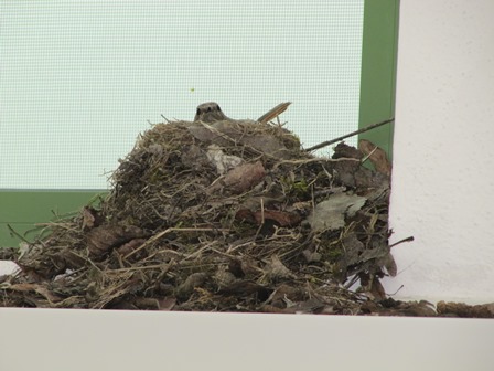 einen ungewöhnlichen Brutplatz hat sich diese Vogelmama ausgesucht. Sie hat ihr Nest bei uns in der Firma im Waschraum gebaut: