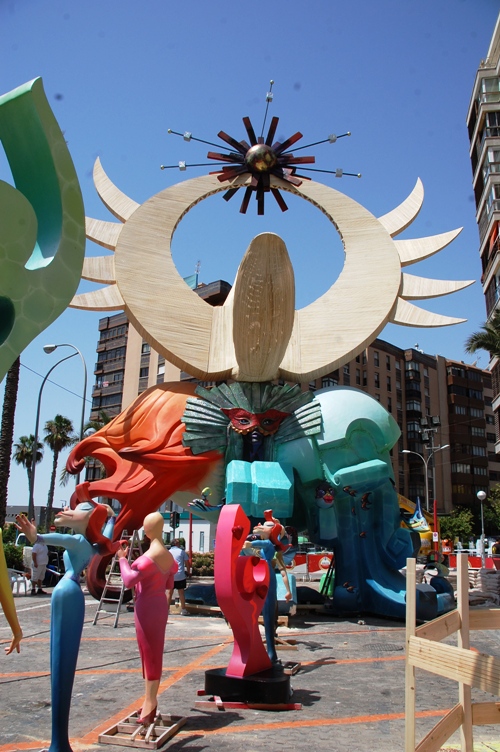 Als ich am Freitag in Alicante war, wurde überall fieberhaft am Aufbau der Pappmaschee-Figuren gearbeitet, Plätze abgesperrt, Tische und Stühle aufgestellt - eine ganze Stadt in Feierlaune!