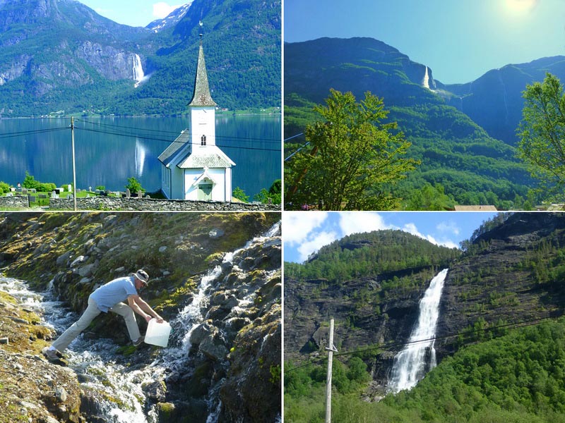 Nach einer Biege geht wieder einige Kilometer zurück, aber dann nach Norden. Über Vossewangen und das Südende des Naerrøyfjords erreichen wir Flam, bekannt durch seine Bahn ins Hochland.