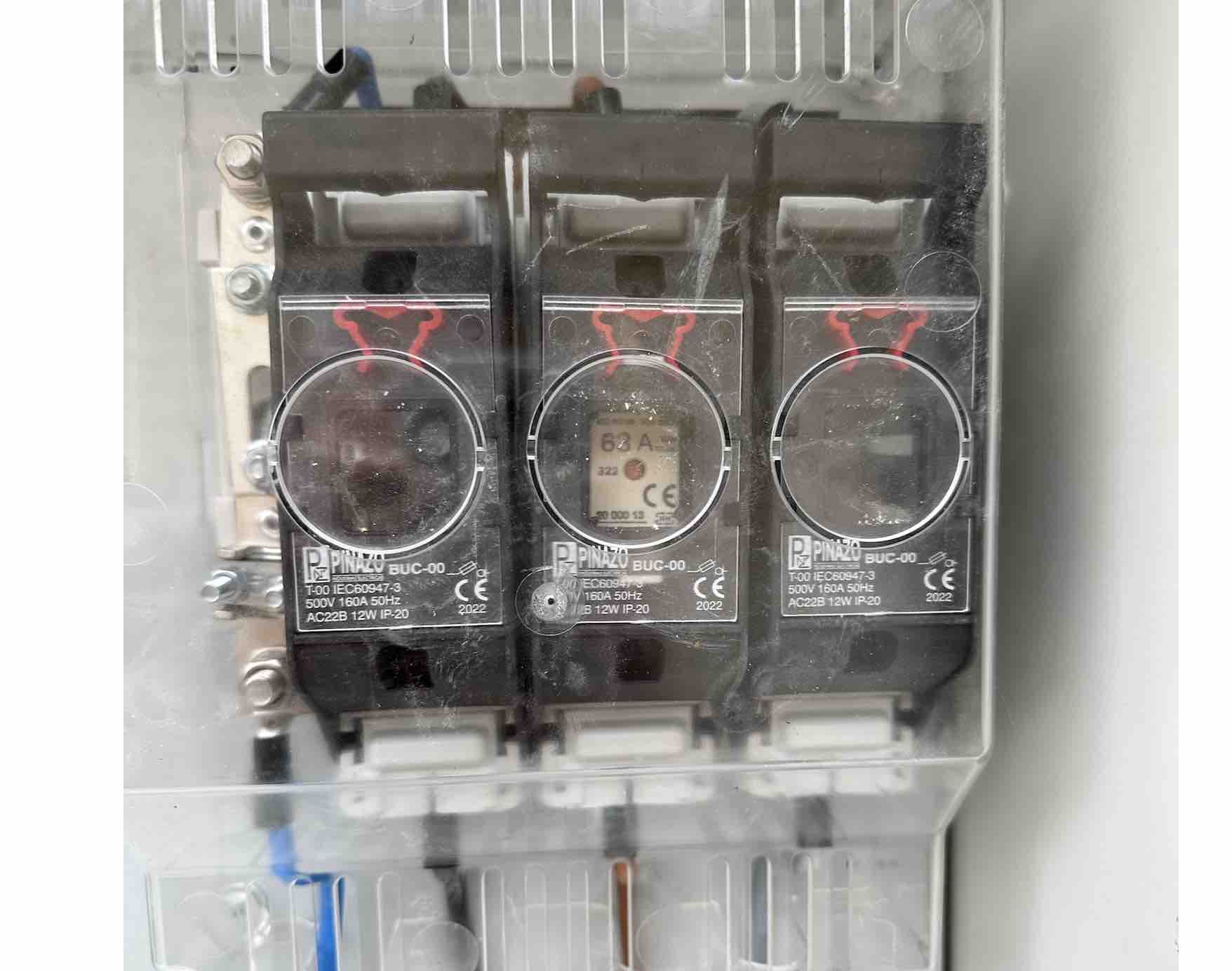 Edit: Ich habe noch ein Foto von den NF-Sicherungen angehängt. Vielleicht findest du die im oberen Teil. Die haben in der Mitte einen Indikator.