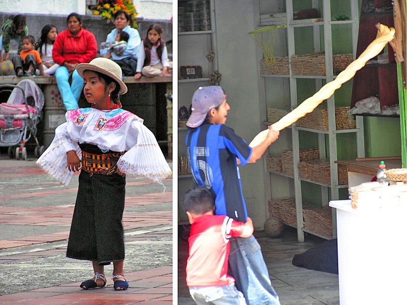 . Ein reiches Angebot an Waren aller Art und eine ausgezeichnete touristische Infrastruktur machen den Aufenthalt angenehm. In der Hauptstraße sehen wir eine Besonderheit. An einigen Shops oder Restaurants zerren junge Männer - „Melcocheros“ - jeweils an einem über einen Holzhaken hängenden plastisch - teigigen Strang, der immer wieder verdreht und erneut über den Haken gehängt wird. Der melchocha-Teig, eine süße Masse aus Zuckerohrstärke, wird dann als eine Art „Toffee“ in Stangenform angeboten.