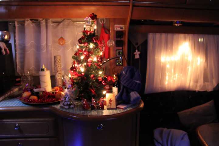 Wir besuchen gerne Weihnachtsmärkte in der Umgebung – besonders gefiel uns letztes Jahr der Markt in Gandia. Wir dekorieren unsere Zelte und das Wohnmobil und ein kleiner Christbaum darf natürlich auch nicht fehlen – auf Weihnachtsgeschenke verzichten wir, nur meine beiden Fellnasen bekommen ein kleines Päckchen mit Leckerlis. Abends gibt es im Restaurant ein wunderbares Weihnachtsmenü und das genießen wir mit unseren Camperfreunden. Zu Silvester laden wir Freunde ein und bleiben bei unseren mutigen Hunden, denn die Schießerei ist ganz fürchterlich für die Beiden.