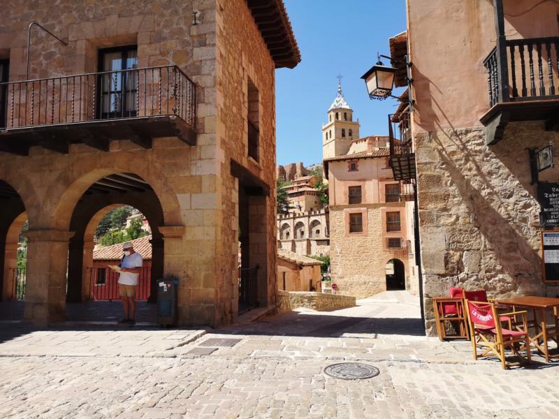 Von diesem Parkplatz kann man ohne Treppen Albarracín wunderbar erkunden.
