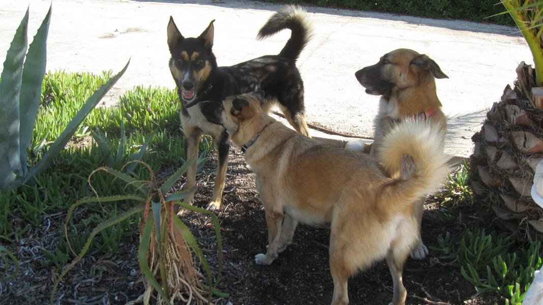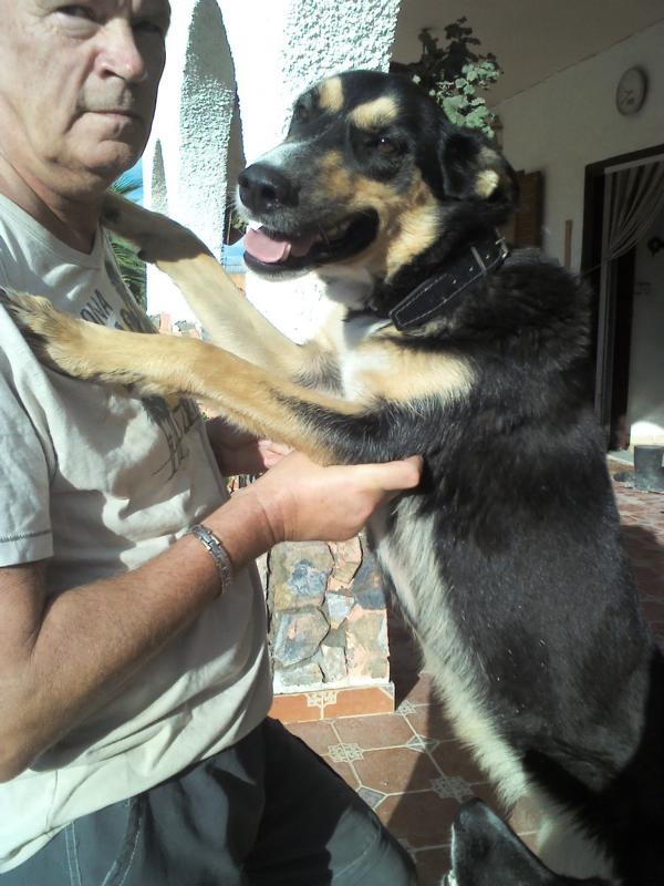 Gestern waren wir Richtung Crevillente unterwegs als uns das Unwetter voll erwischt hat, Straßen unter- und überspült, Polizei, Absperrungen etc. wir waren froh als wir unbeschadet zu Hause angekommen waren. Bonny war ja bis dato im Gästehäuschen untergebracht, aber nach diesem Unwetter beschlossen wir nun sie zu uns ins Haus zu nehmen. Gesagt, getan, ein Zimmer hergerichtet und rein mit ihr, heute früh nun das 1. Mal gemeinsames Gassigehen zusammen mit Frodo, Tessa und der behinderten Foxy, unsere alte Bella geht grundsätzlich bei Regen nicht raus - lol. Es ging besser als wir dachten, Bonny lief relativ gut an der Leine, Tessa war ziemlich uninteressiert an Bonny, das widerum hat uns dazu gebracht noch einen Schritt weiter zu gehen. Als wir zu Hause ankamen, haben wir alle zusammen ohne Leine durch den Garten laufen lassen - natürlich immer unter unseren wachenden Augen , nachdem das auch funktioniert hat, haben wir sie mit ins Haus genommen. Nun, eigentlich ging es den ganzen Tag recht gut, zum Abend hin hat Bonny dann aber ganz scharf die Tessa angemacht, wohl nach dem Motto: wie du mir so ich dir. Ansonsten liegt sie immer ziemlich abseits, es wird wohl noch ne Weile dauern bis wir sie vollständig intregiert haben, aber es ist ja eigentlich auch erst der erste Tag wo alle mehr oder weniger zusammen sind.