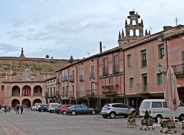 Hoch über den Häusern thront die Burg aus dem Mittelalter, in deren Innern sich die Kirche San Miguel befindet. Rund um die Plaza Mayor sind die typischen Arkadengänge.