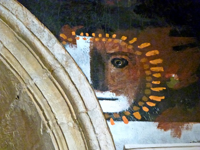 Beim Kauf der Eintrittskarte wird man explizit darauf hingewiesen, dass eine Stufe in den Kirchenraum führt. Trotzdem stolpert die Hälfte der Besucher in die Kirche, weil der Blick automatisch in die Höhe geht.