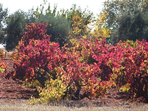 Inzwischen leuchteten die Weinblätter bei Requena dunkelrot.