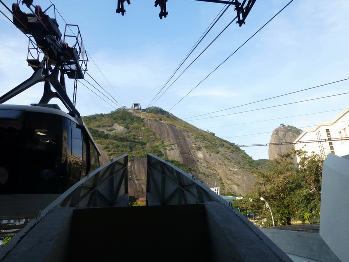 Hier hinauf wollen wohl alle Touristen : Die Seilbahn in 2 Sektionen auf den Zuckerhut (rechts oben) .