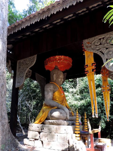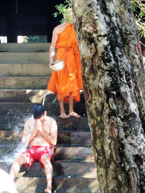 Touristen begegnet man zur Mittagszeit selten, hier <br />nutzen Mönche mit ihren safrangelben Gewändern <br />den Schatten