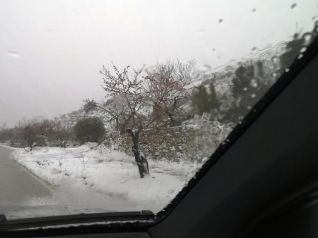 In Castell de Castells sahen wir den ersten Schnee am Straßenrand