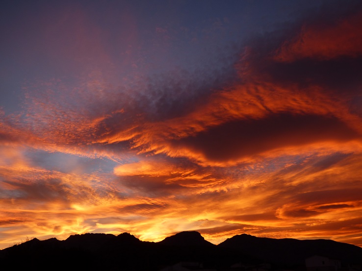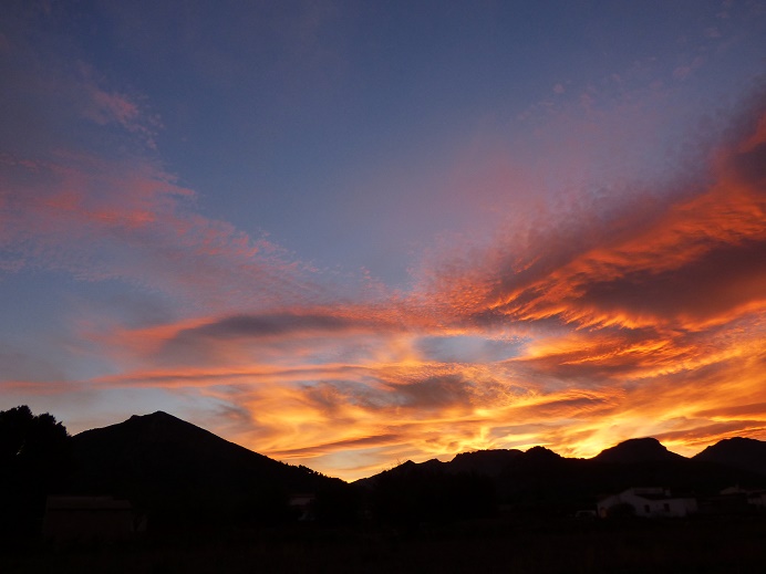 Abendstimmung am 18. August um 21 Uhr im Jalóntal - der Himmel brennt
