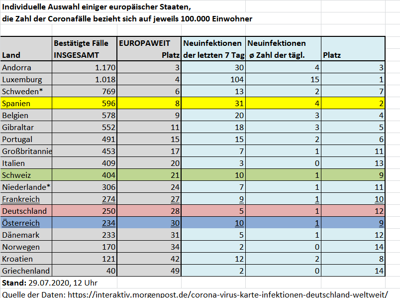 Ich habe eine Grafik mit den heutigen Daten der Berliner Morgenpost erstellt, die zeigen, wo Spanien im europaweiten Vergleich steht: