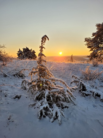 Winterlicher Sonnenaufgang heute im Schwabenland: