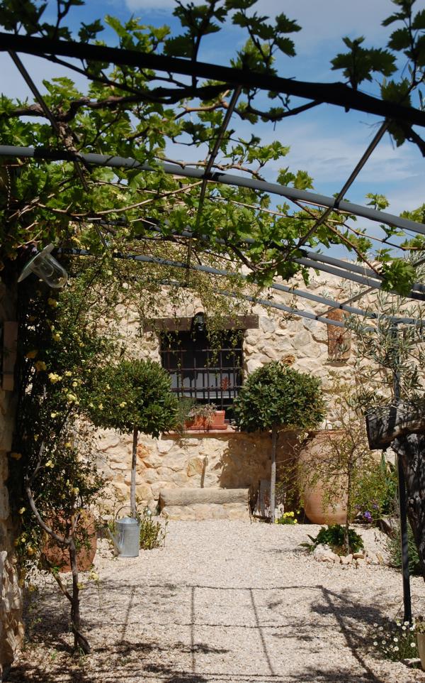 Beerensträucher, Weinlaube ( der fängt jetzt auch an zu treiben), Erdbeeren, Birken und Kiefern--