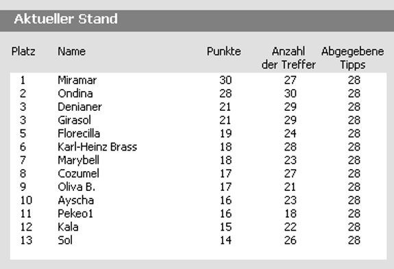 Eure Tipps könnt ihr bis Mittwoch, 27.06.2012, 15.00 Uhr, abgeben!